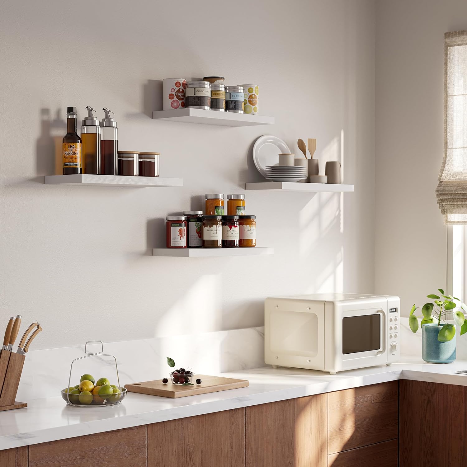 Set of 4–This set includes four floating shelves, allowing you to create a cohesive look throughout your home. Use them all together or spread them out across different rooms for a coordinated and organized space.