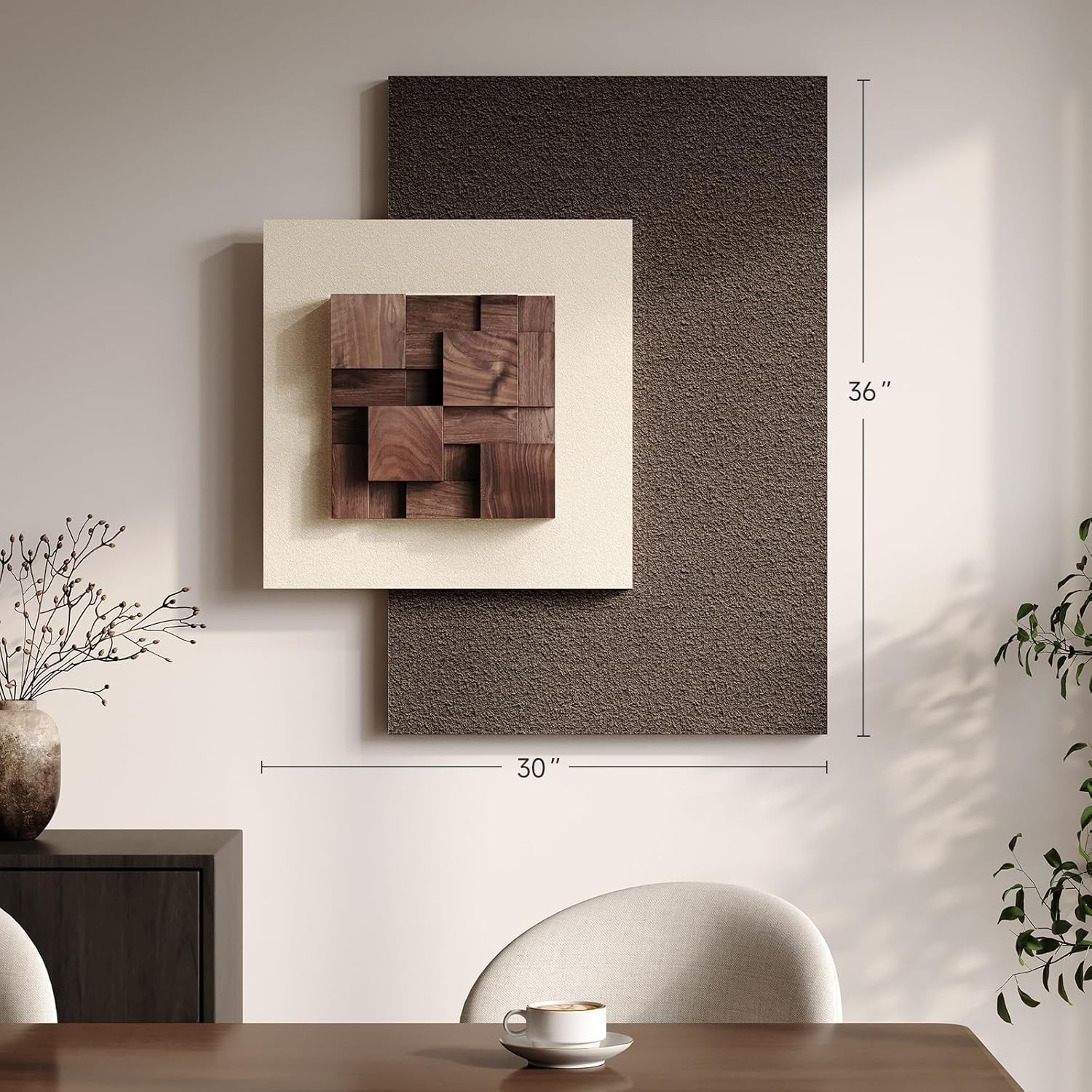 [Abstract Wall Art]: Elevate your space with this multi-layered 3D wall art, featuring neutral beige and brown tones paired with solid wood blocks. Its design adds warmth and depth—perfect for modern, minimalist, or rustic interiors in living room, dining room, bedroom, entryway, or offices. A refined statement piece for any wall