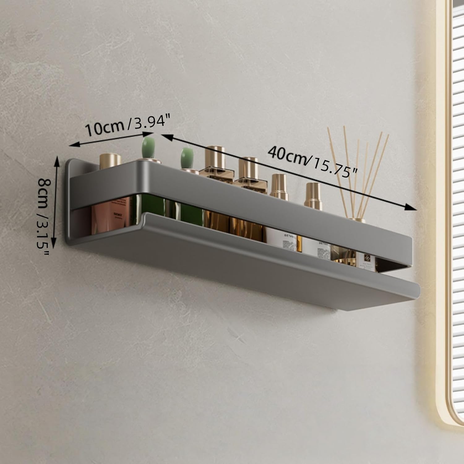 Perfect Size (15.75″D x 3.94″W x 3.15″H) for Multi-Scene Use With a compact 15.75″D x 3.94″W x 3.15″H, this storage shelf fits perfectly in tight spaces. Use it as a spice rack on your kitchen wall or countertop to organize herbs and seasonings; or place it in the bathroom as a shower caddy to store toiletries. It also works great inside cabinets for hidden spice organization—one rack, multiple uses!