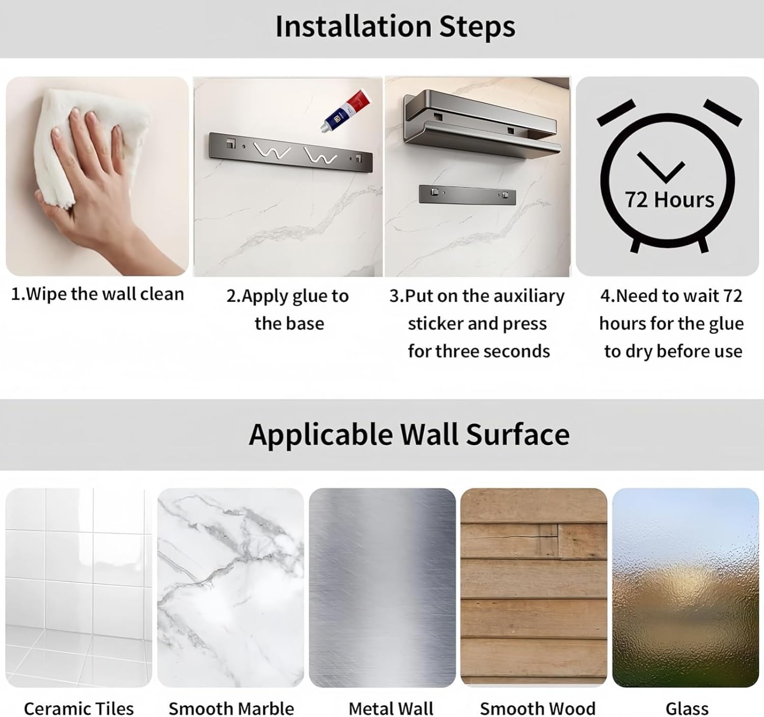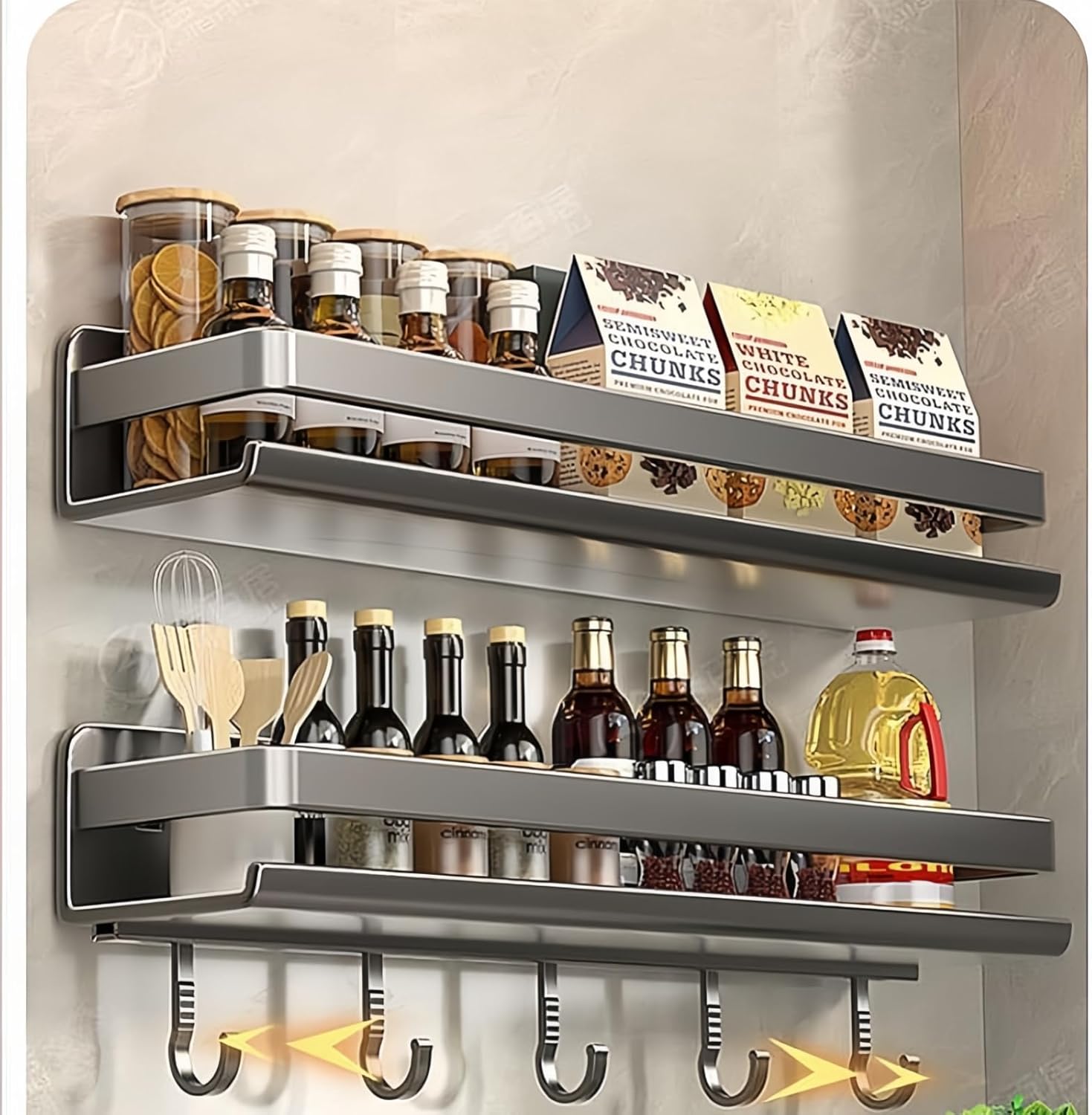 No-Drill Adhesive Installation or Drilling Option for Versatility Skip the hassle of drilling holes in your walls! The strong adhesive backing lets you mount this spice rack securely on smooth surfaces like tiles, glass, wood, or cabinet doors in minutes. For extra stability on rough walls or heavy loads, you can also use the included hardware to drill and install it. Ideal for renters or anyone who wants a damage-free storage solution.