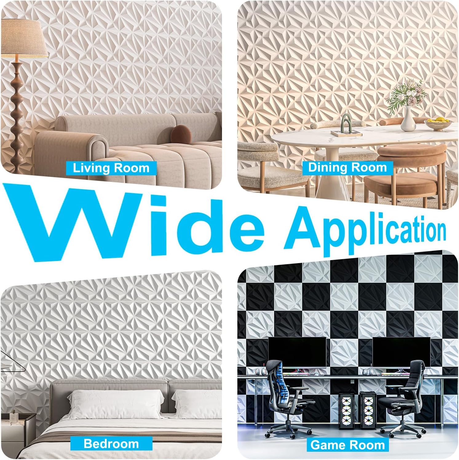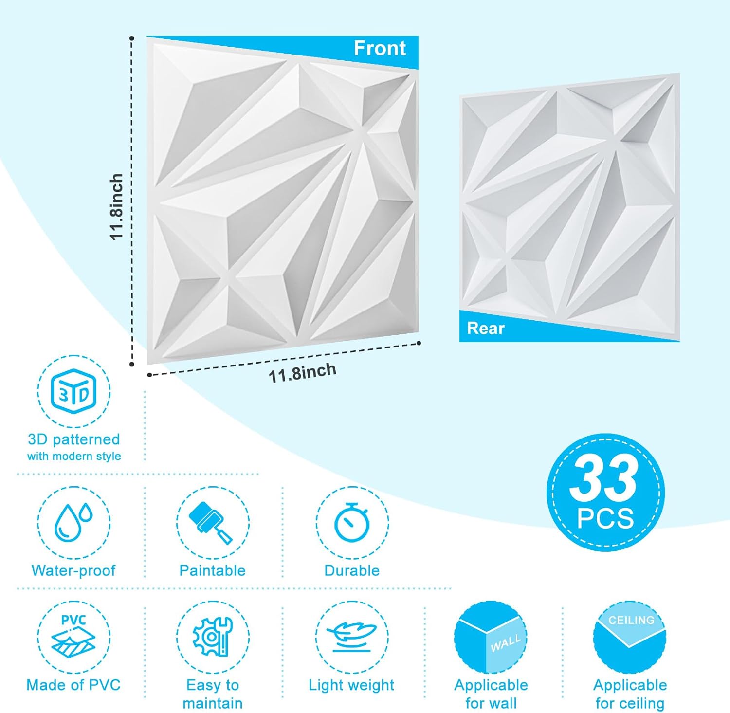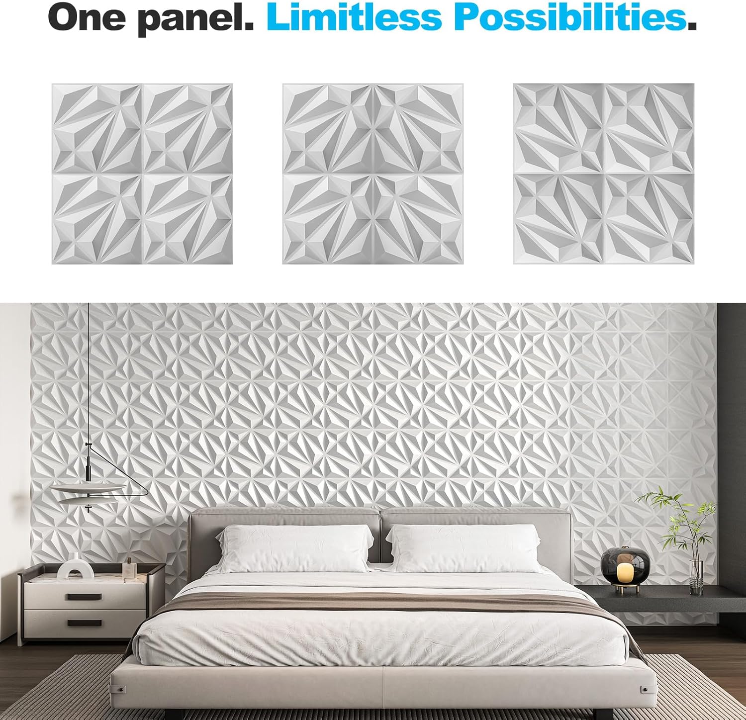 No Pro Skills Needed Art3d 33-Pack 3D Wall Panel for Interior Wall Décor, Diamond Textured PVC Accent Wall PanelingArt3d 33-Pack 3D Wall Panel for Interior Wall Décor, Diamond Textured PVC Accent Wall Paneling