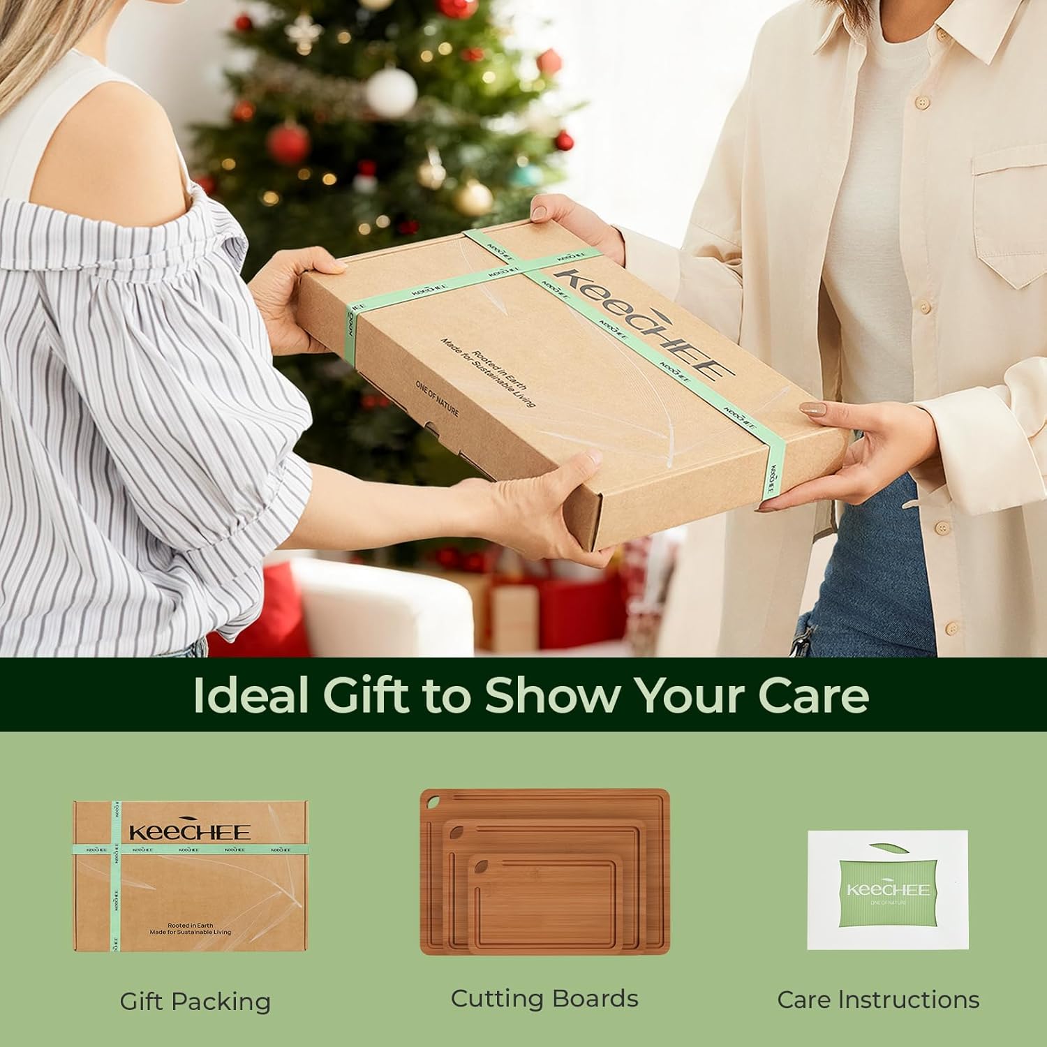 BENEFIT OUR HOME – Keechee’s cutting board set is crafted from sustainably harvested quality bamboo forests(Bamboo grows quickly and a single bamboo can be harvested multiple times). Known for its natural strength and eco-friendliness, our bamboo provides a durable and environmentally responsible choice for your kitchen.