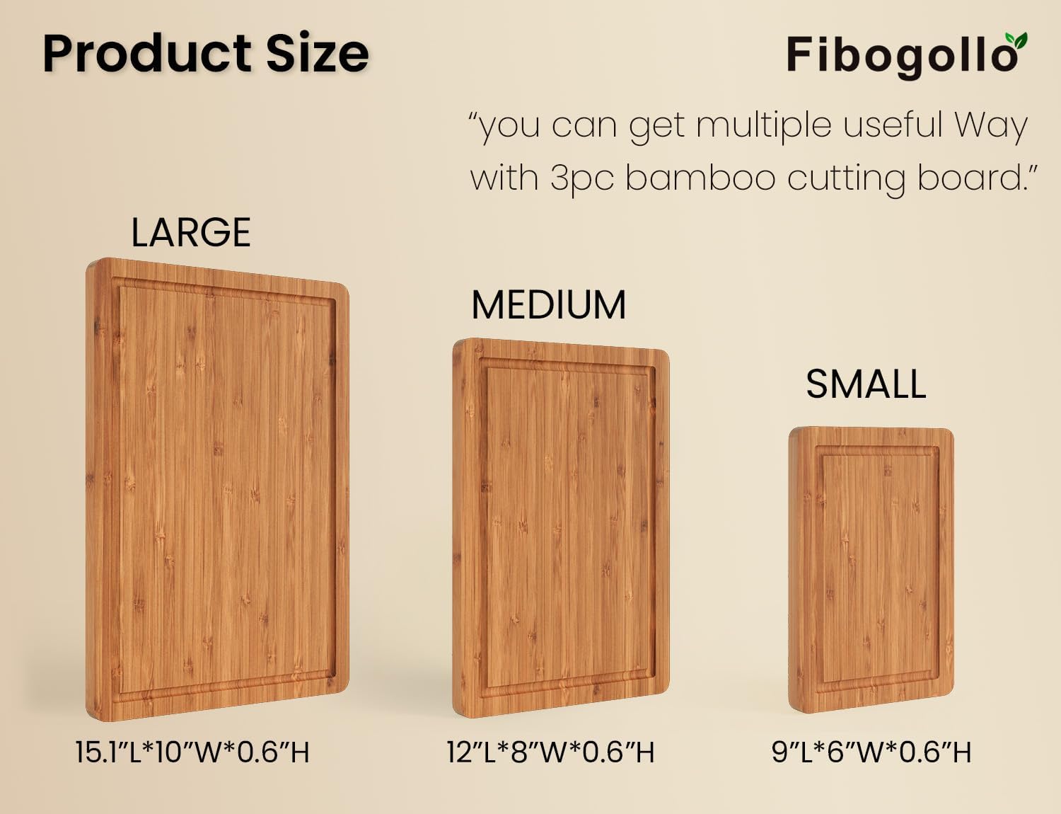 【Versatile Three-Piece Set】This set includes large(15.15*10.03*0.59inch), medium(12.00*8.07*0.59inch), and small(9.05*5.90*0.59inch)cutting boards, catering to a wide range of cutting needs. The large board is ideal for meats and large vegetables,or even use as a charcuterie board, the medium fruits and slicing , and the small perfect for delicate ingredients .Three different sizes are available for you to choose according to different use requirements.
