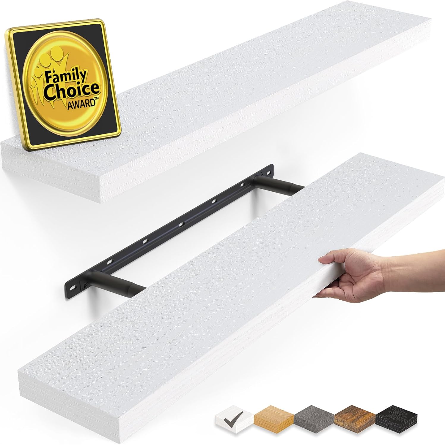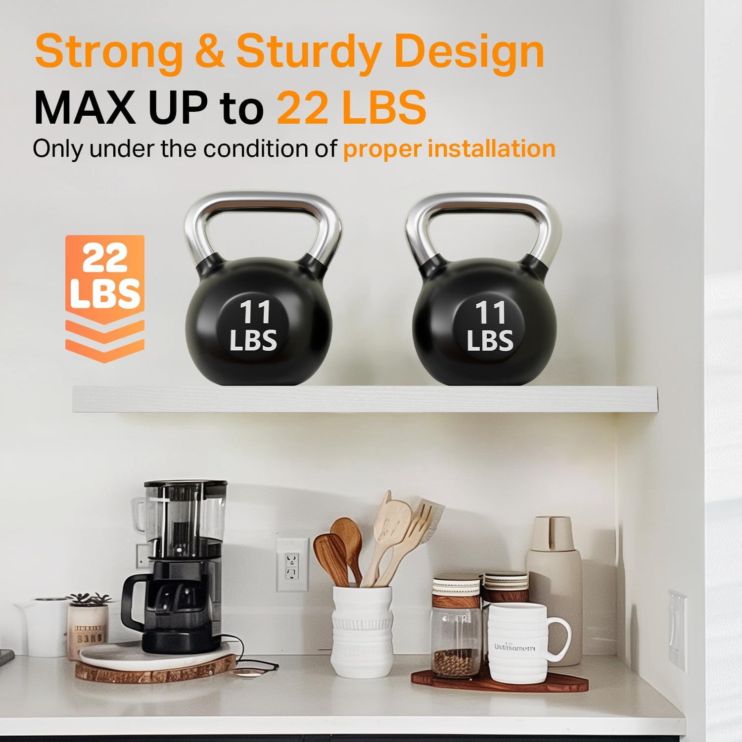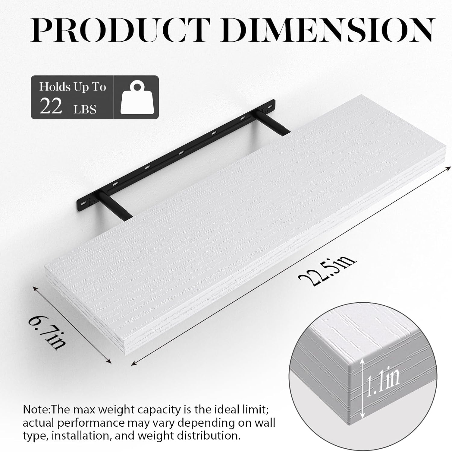 𝐒𝐩𝐚𝐜𝐢𝐨𝐮𝐬 & 𝐅𝐮𝐧𝐜𝐭𝐢𝐨𝐧𝐚𝐥 𝐒𝐢𝐳𝐞 – At 22.5 𝐢𝐧𝐜𝐡𝐞𝐬 𝐥𝐨𝐧𝐠, these shelves 𝐩𝐫𝐨𝐯𝐢𝐝𝐞 𝐚𝐦𝐩𝐥𝐞 𝐬𝐩𝐚𝐜𝐞 𝐟𝐨𝐫 𝐨𝐫𝐠𝐚𝐧𝐢𝐳𝐢𝐧𝐠 𝐨𝐫 𝐬𝐡𝐨𝐰𝐜𝐚𝐬𝐢𝐧𝐠 𝐢𝐭𝐞𝐦𝐬 𝐰𝐢𝐭𝐡𝐨𝐮𝐭 𝐜𝐫𝐨𝐰𝐝𝐢𝐧𝐠 𝐲𝐨𝐮𝐫 𝐰𝐚𝐥𝐥. 22.5“ provides 40% 𝐦𝐨𝐫𝐞 𝐝𝐢𝐬𝐩𝐥𝐚𝐲 𝐬𝐩𝐚𝐜𝐞 than standard 16″ shelves