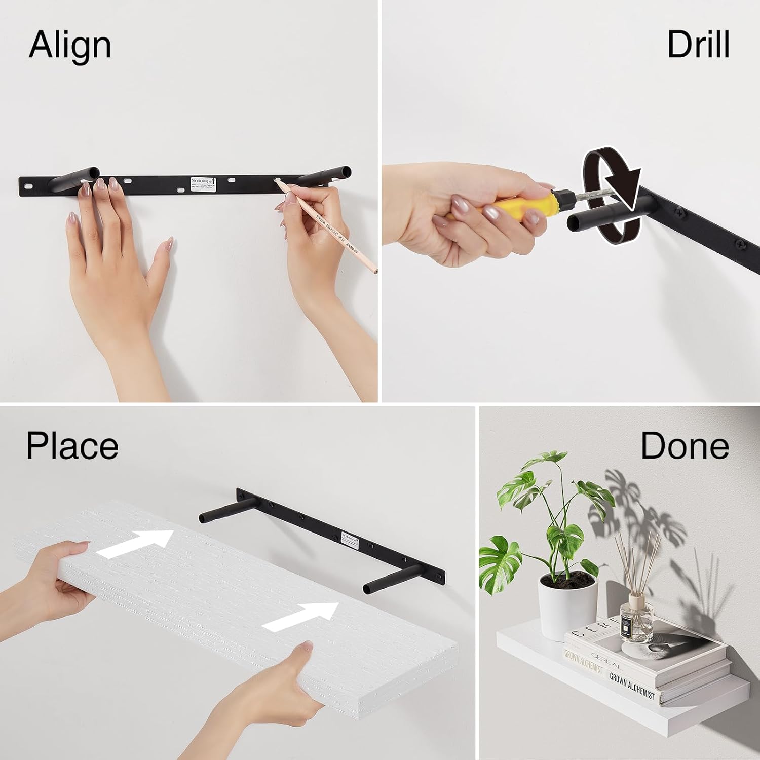 𝐒𝐭𝐫𝐨𝐧𝐠 𝐋𝐨𝐚𝐝 𝐂𝐚𝐩𝐚𝐜𝐢𝐭𝐲 – Made from 𝐝𝐮𝐫𝐚𝐛𝐥𝐞 𝐞𝐧𝐠𝐢𝐧𝐞𝐞𝐫𝐞𝐝 𝐰𝐨𝐨𝐝 and reinforced with sturdy brackets, each shelf 𝐬𝐮𝐩𝐩𝐨𝐫𝐭𝐬 𝐮𝐩 𝐭𝐨 𝟐𝟐 𝐥𝐛𝐬, making them 𝐢𝐝𝐞𝐚𝐥 𝐟𝐨𝐫 𝐛𝐨𝐨𝐤𝐬, 𝐩𝐥𝐚𝐧𝐭𝐬, 𝐭𝐨𝐢𝐥𝐞𝐭𝐫𝐢𝐞𝐬, 𝐨𝐫 𝐝𝐞𝐜𝐨𝐫
