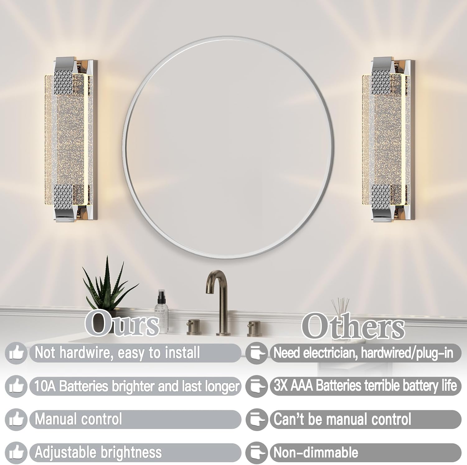 【Battery sconces wall lighting】The LED crystal wall sconce features a metal brass finish and sturdy corrugated crystal cubes, creating the perfect atmosphere for your bathroom. Wall sconce light fixture design is simple yet elegant, adding a touch of aristocracy to any space.
