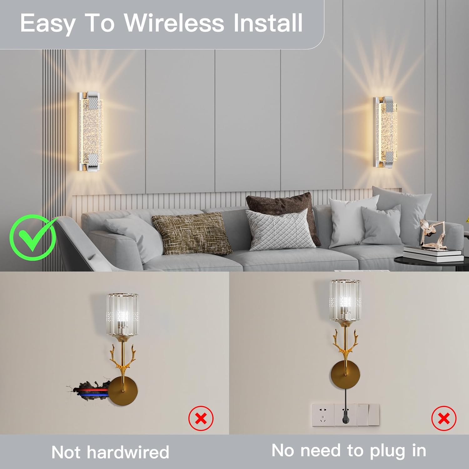Battery operated sconce is easy to install, non-hardwired dimmable wall sconces are suitable for bedrooms, living rooms, bathrooms, corridors.