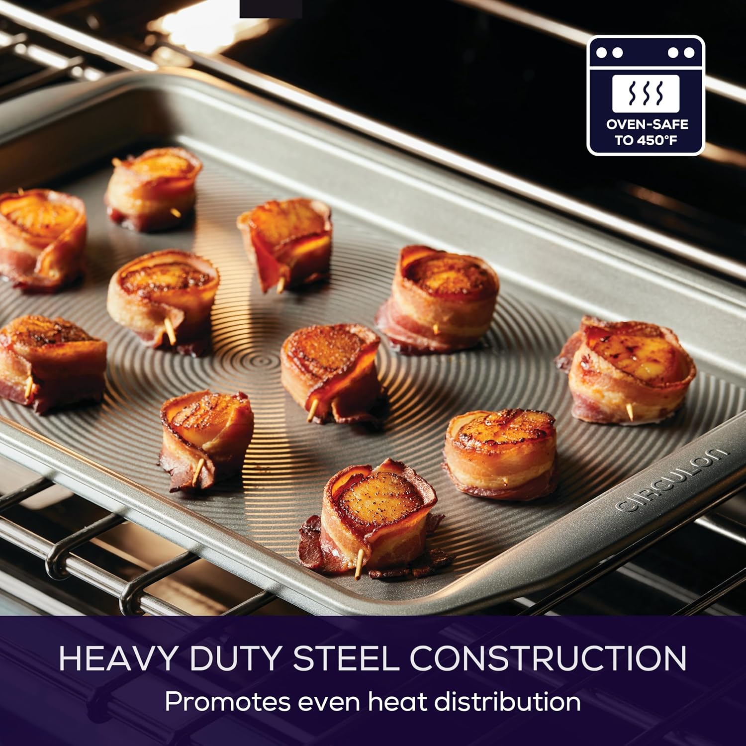 EMBRACE THE HEAT: The cookie sheets are oven safe to 450°F; wide handles provide generous, confident grip