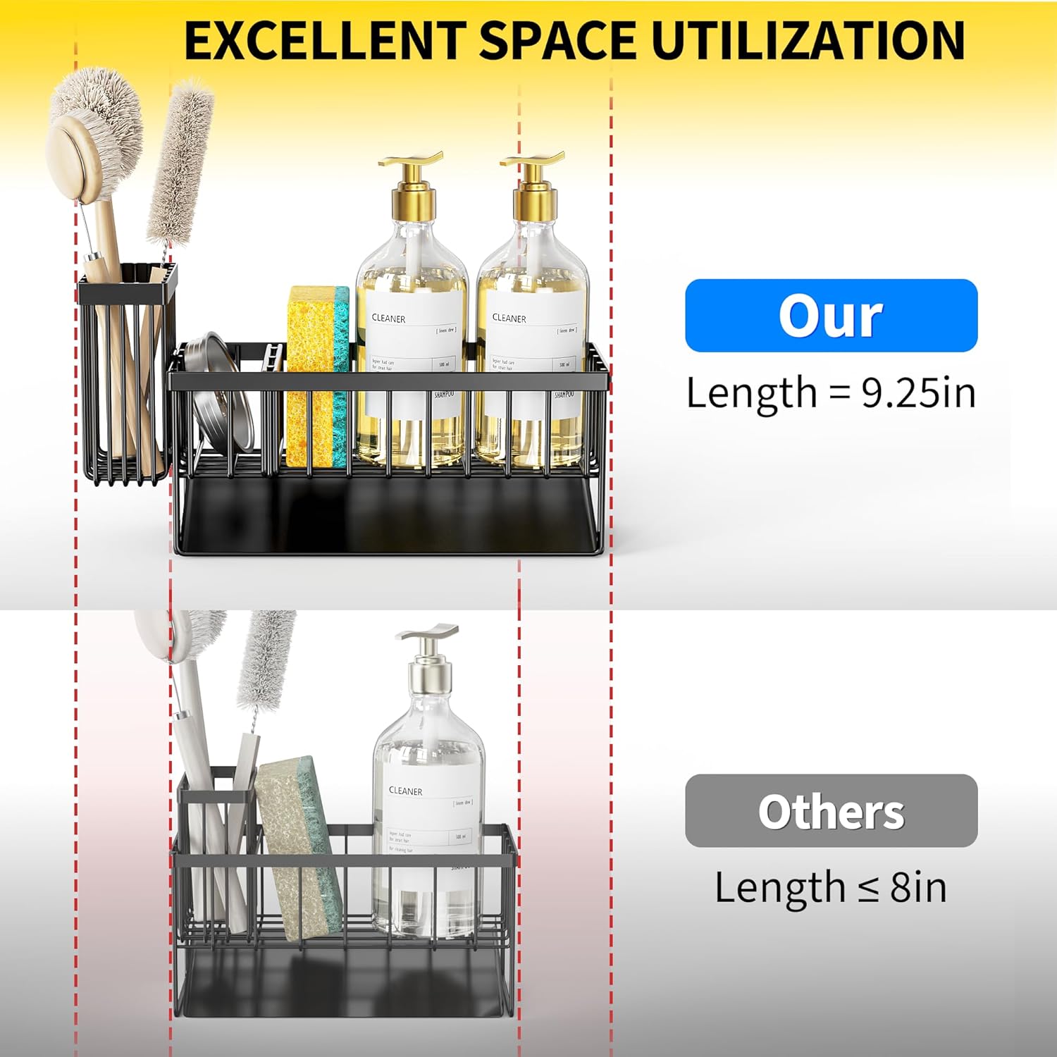 【REASONABLE DIVIDER DESIGN】 The sponge holder for kitchen sink ergonomic divider design allows it to have 3 separate storage spaces, Different items are placed in different areas. Make the most of every inch of space and make your kitchen look cleaner.