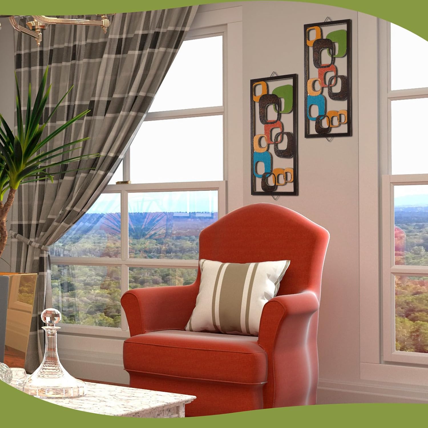 Inclusive and Exquisite Design: includes 2 Mid Century modern style wall decor pieces, each individually crafted with an inspiring retro Mid Century theme; These Mid Century modern elegance wall accents cater to needs, enhancing the visual appeal of your space and fostering an attractive ambiance