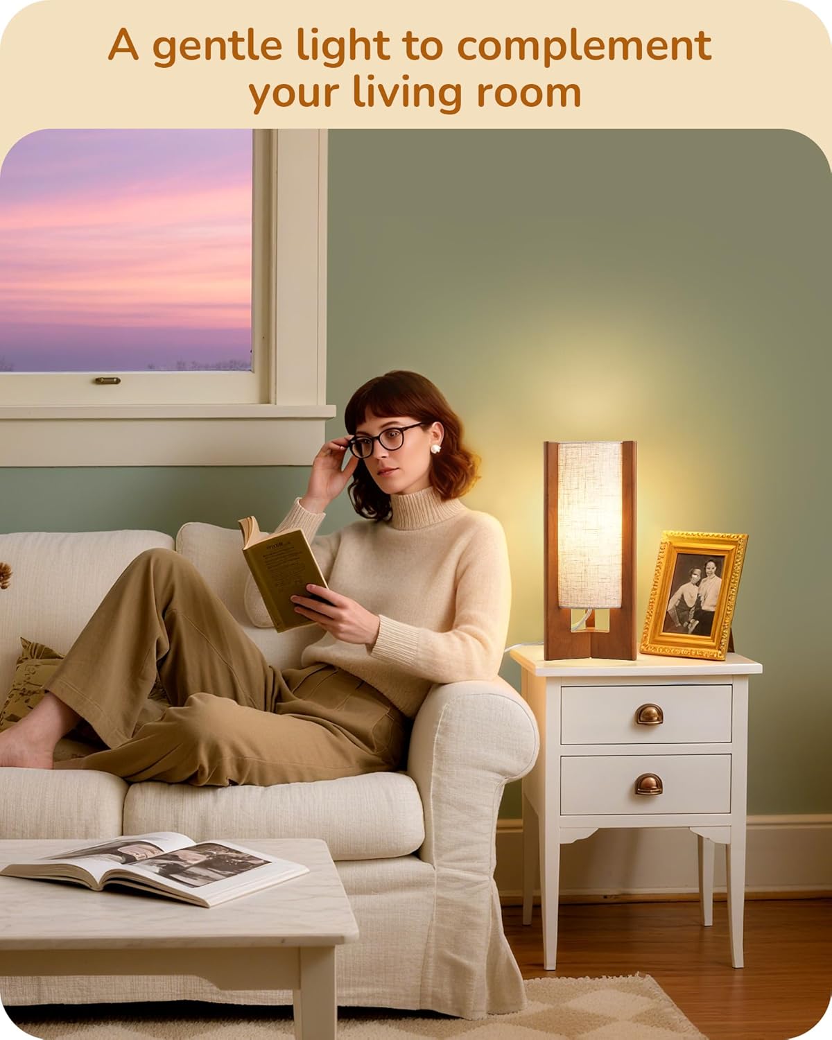 [Soft Warm Linen Shade] Crafted with a high-quality linen lampshade, the modern side table lamp offers soft, diffused lighting that reduces eye strain and creates a cozy atmosphere, and the lampshade can be easily placed and removed