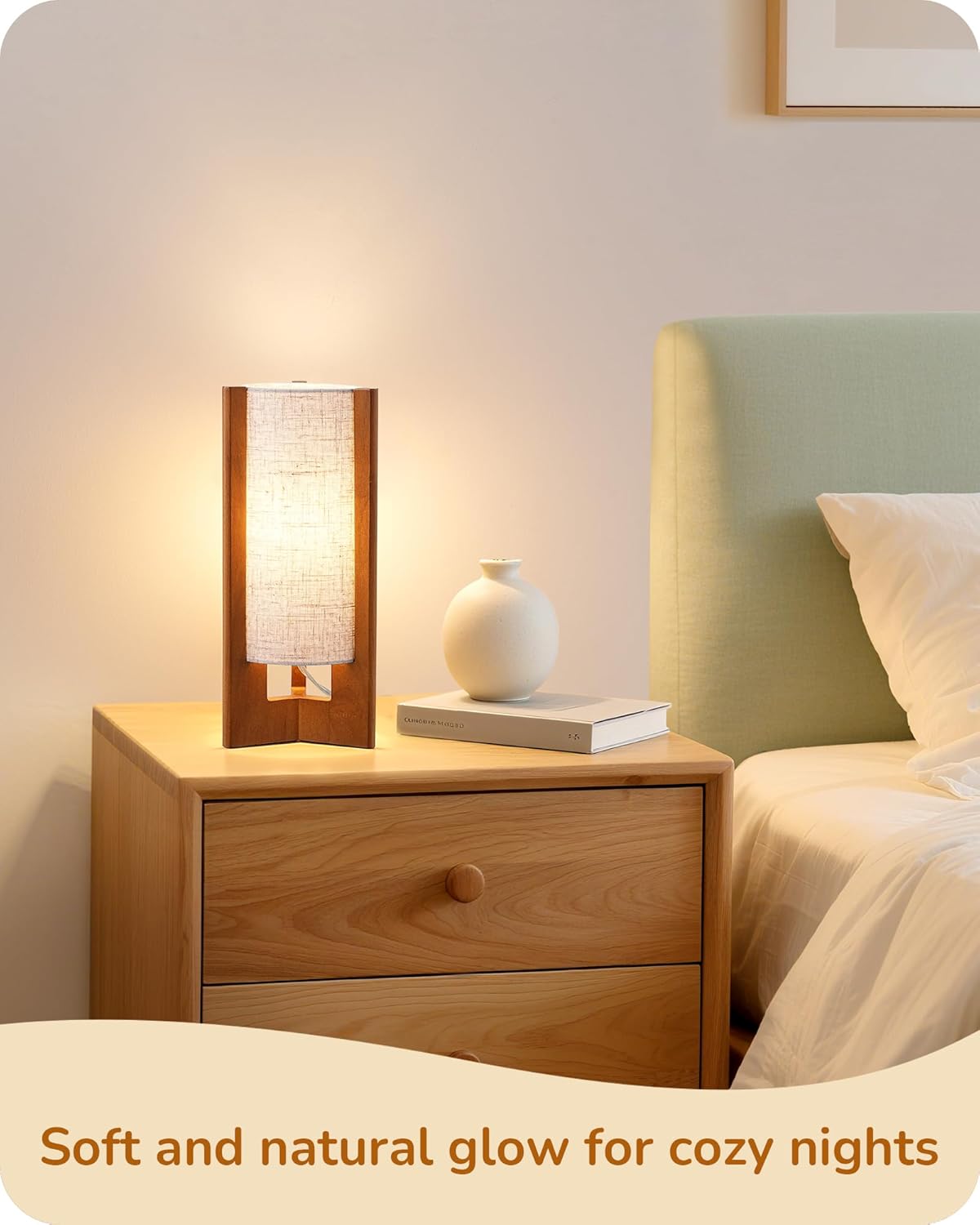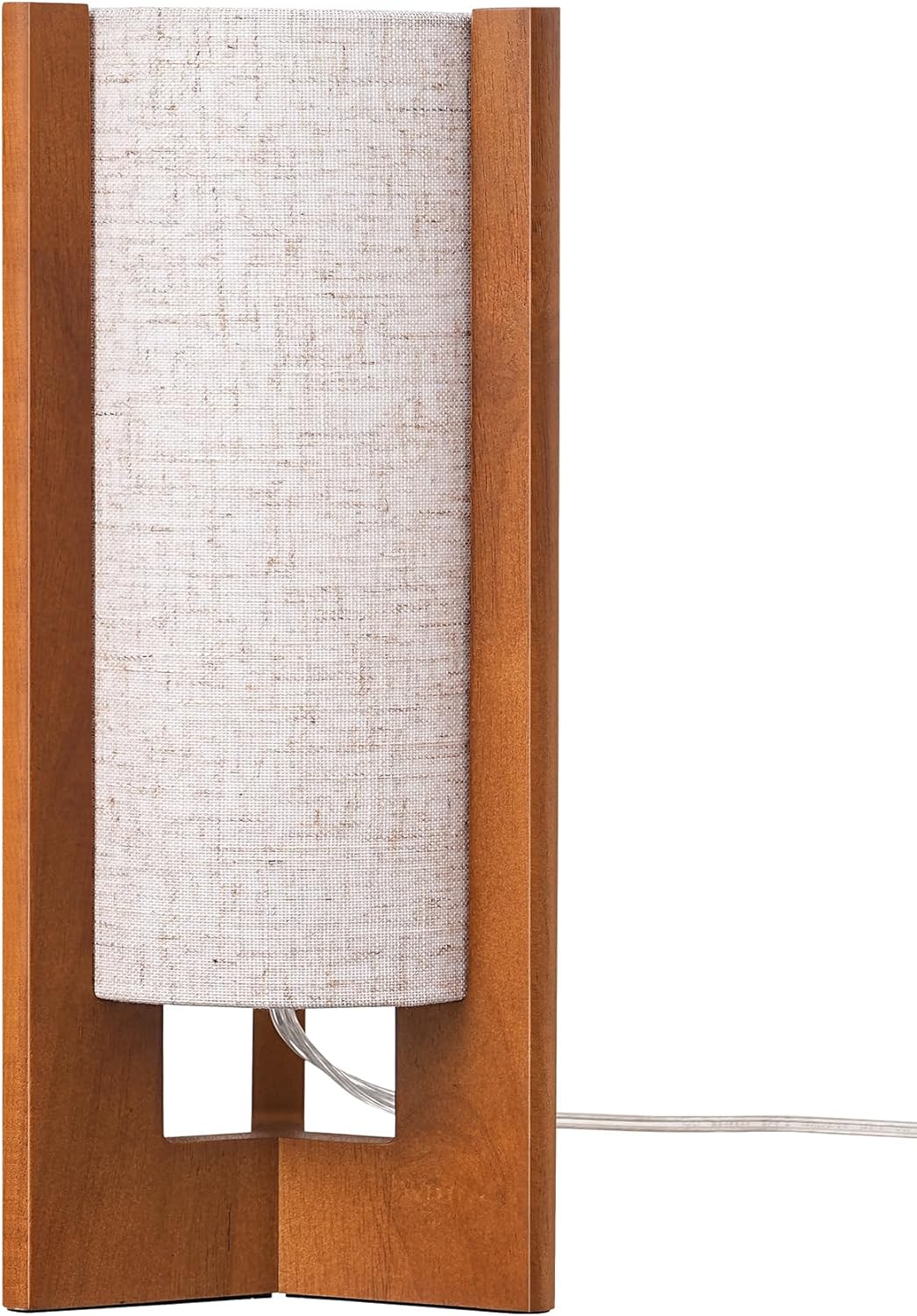 [Stable Cylinder Structure] With a three-sided solid wood base, this small end table lamp remains sturdy and balanced, preventing tipping while saving space; the cylinder shape complements the linen shade, making it both practical and decorative