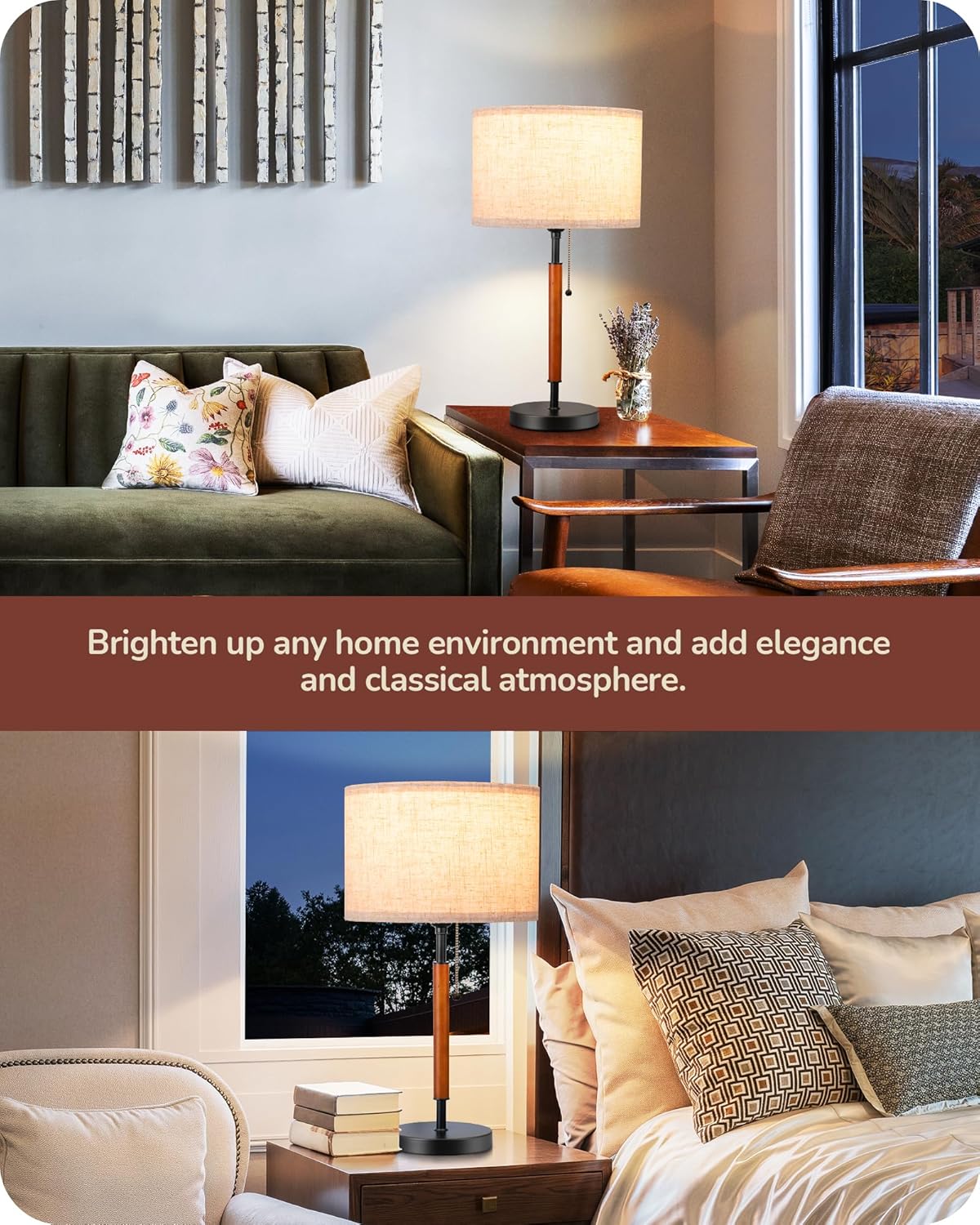 [Convenient Pull Chain Switch] Designed with a sleek pull chain switch, this side table lamp offers effortless operation while neatly concealing the cord, maintaining a tidy and attractive home environment; the metal triangle exit ensures smooth, wear-resistant switching, providing a silky touch every time