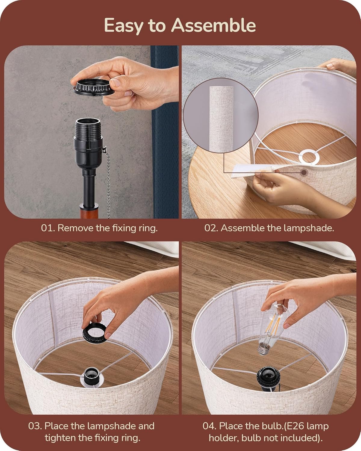 [Easy Assembly] Assemble your perfect table lamp effortlessly with the simple-to-install lampshade, featuring an E26 socket (bulb not included) and a generous 65-inch power cord, this lamp offers flexible placement options, allowing you to create the ideal lighting setup in any space