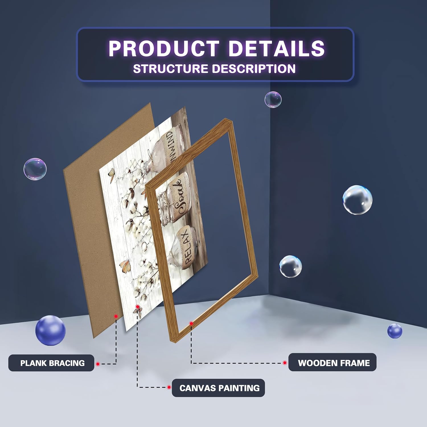 【Premium Quality Materials】Crafted with a durable dark wood frame, this framed bathroom wall art is designed to last. The high-quality canvas brings the bathroom wall decor to life with vibrant colors and sharp details. Whether you’re looking for rustic bathroom decor or bathroom canvas wall art, this set ensures both durability and style for years to come.