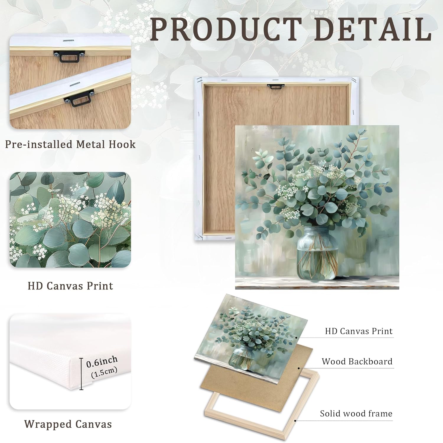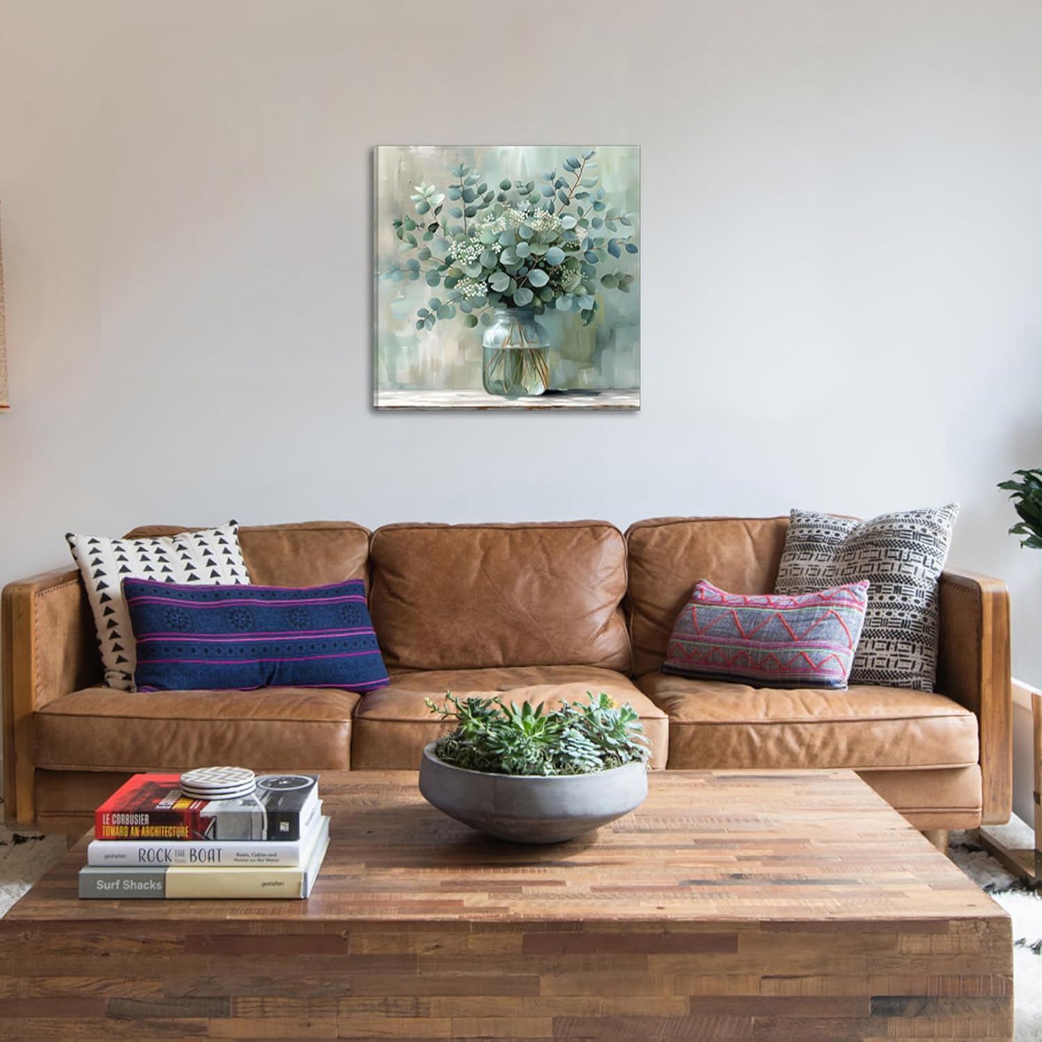 Versatile Decor for Every Room: Select the perfect dimension for your space with available size options like 12x12in or 20x20in; this adaptable eucalyptus artwork enhances any area, serving beautifully as bathroom wall decor, peaceful bedroom wall art, fresh kitchen wall art, elegant dining room wall art, welcoming living room wall art, or professional office artwork wall decor; brightens restrooms and hallways, providing stylish pictures wall decor solutions for large or small wall art needs