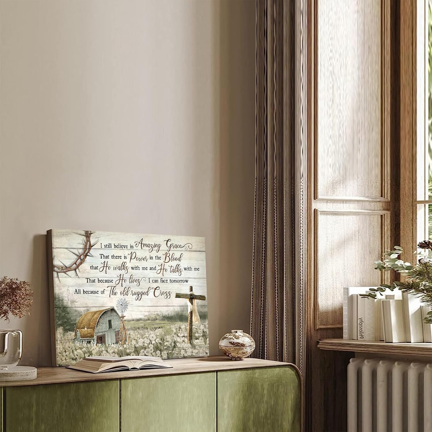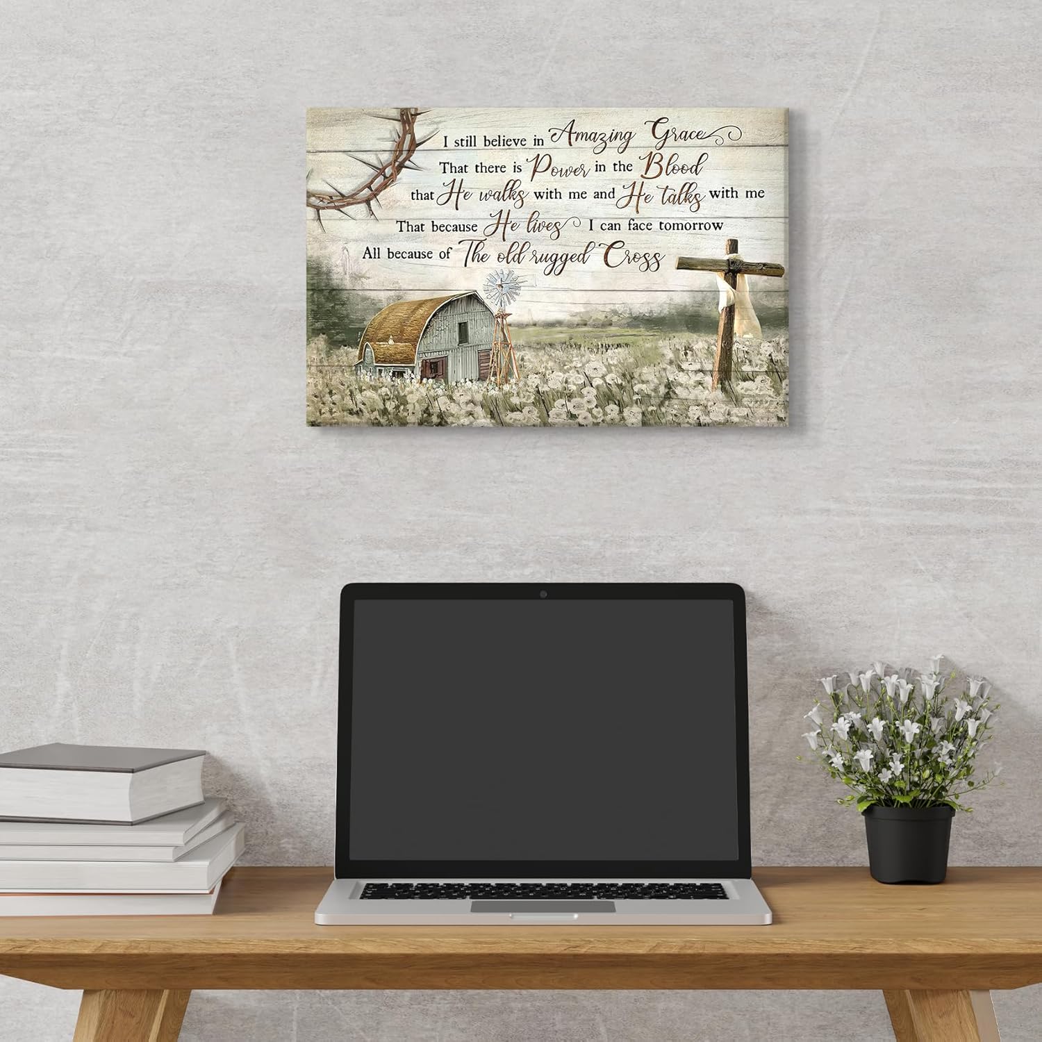HDXUFJQ Christian Wall Art Barn Windmill Canvas Wall Decor Religious Cross Wall Art I Still Believe In Amazing Grace Picture Print Christian Prayer Decor Paintings Ready To Hang(12″x16″)