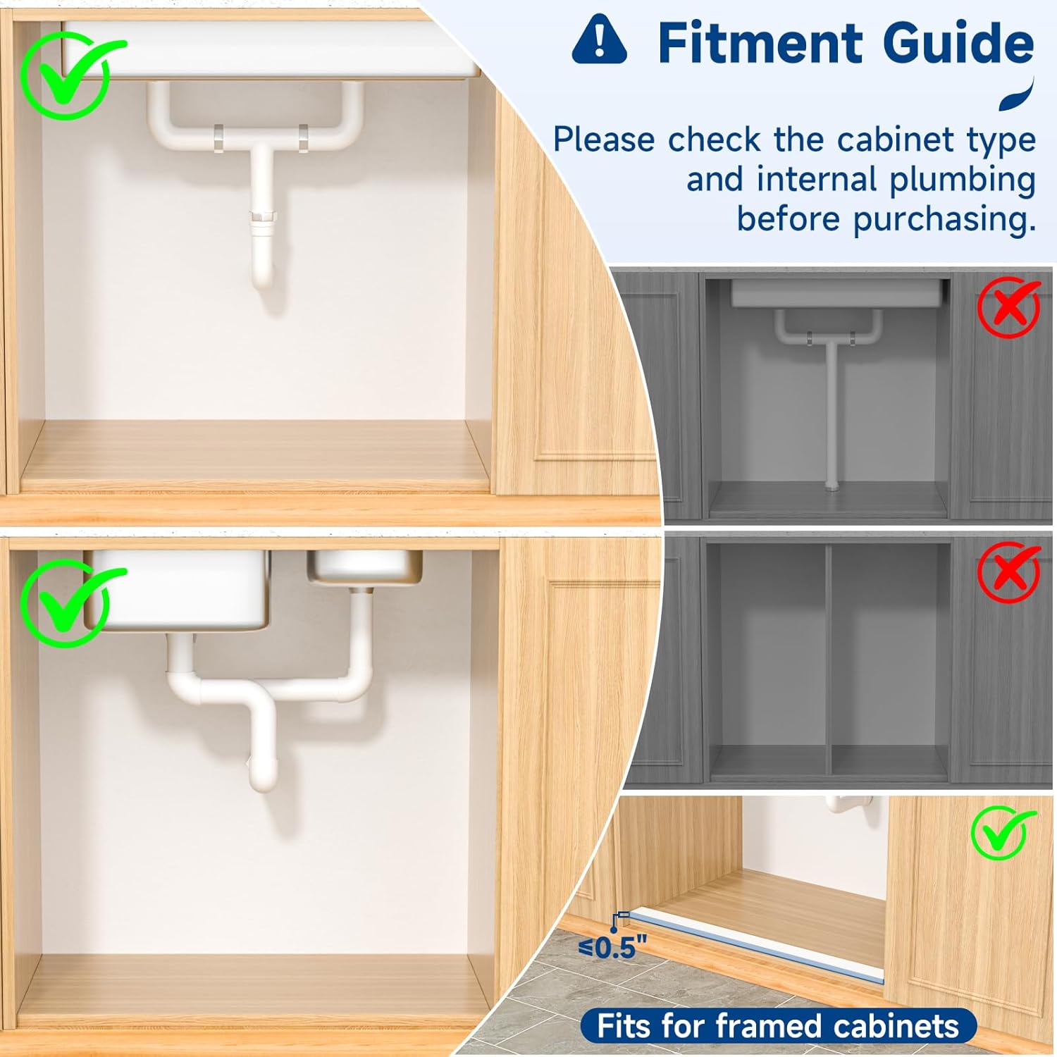 Large Capacity: Say goodbye to sink cabinet clutter! Insputer newly upgraded under-sink organizer kitchen adopts a patented L-shaped design with a narrow top and wide bottom, which cleverly avoids pipes and garbage disposals, and taps into every inch of unused space. Compared with the traditional non-adjustable style, the storage space has increased by 150%, truly realizing the multiplication of space! Home organization must haves!
