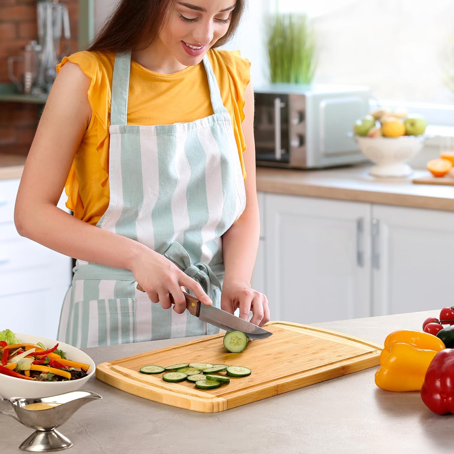 Gentle on Knives: Unlike glass or plastic cutting boards, our bamboo board provides a smooth knife-friendly surface. It helps maintain the sharpness of your blades, ensuring precise cuts without the dulling, wear and tear.
