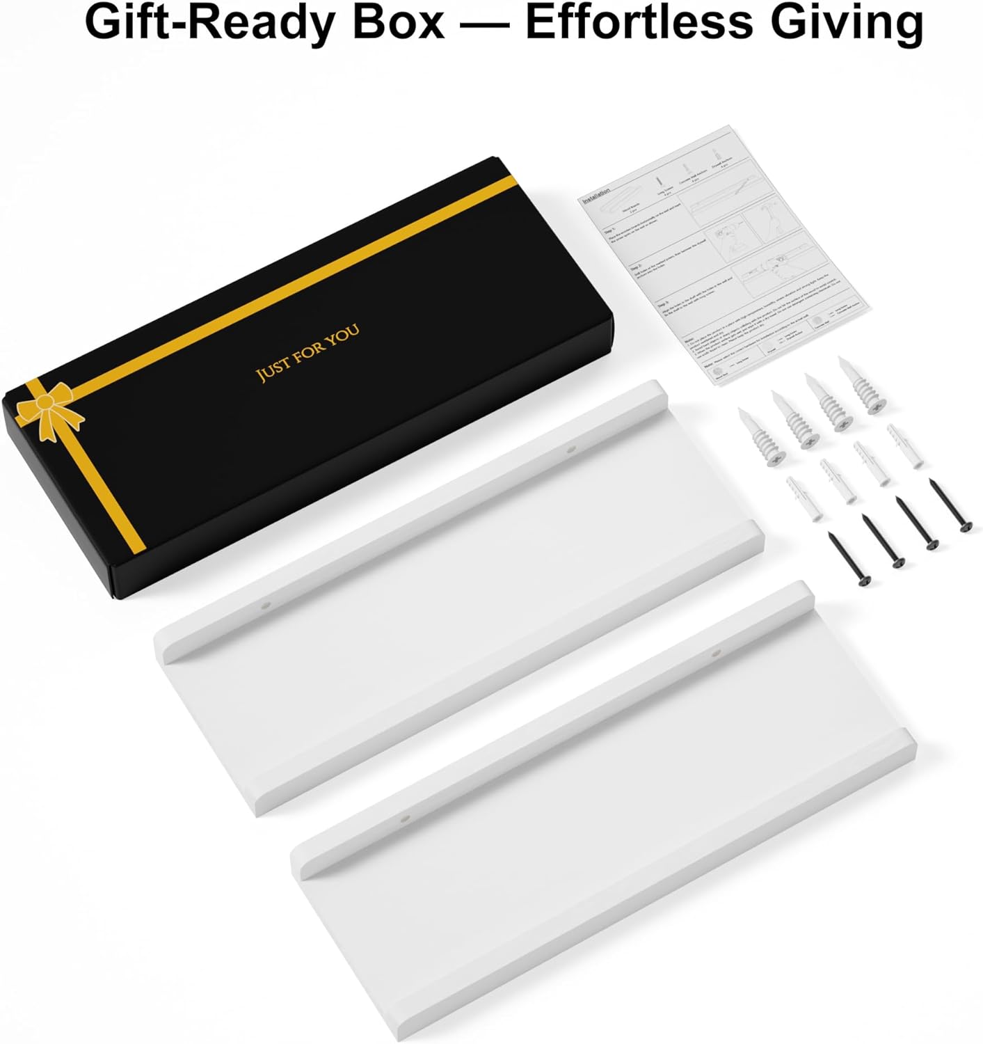 Easy to Install – With the two pre-drilled holes in the back of the shelf, you can mount the wall shelf on the wall easily. And there comes with necessary sturdy hardware and instruction in the package for assemble easily.