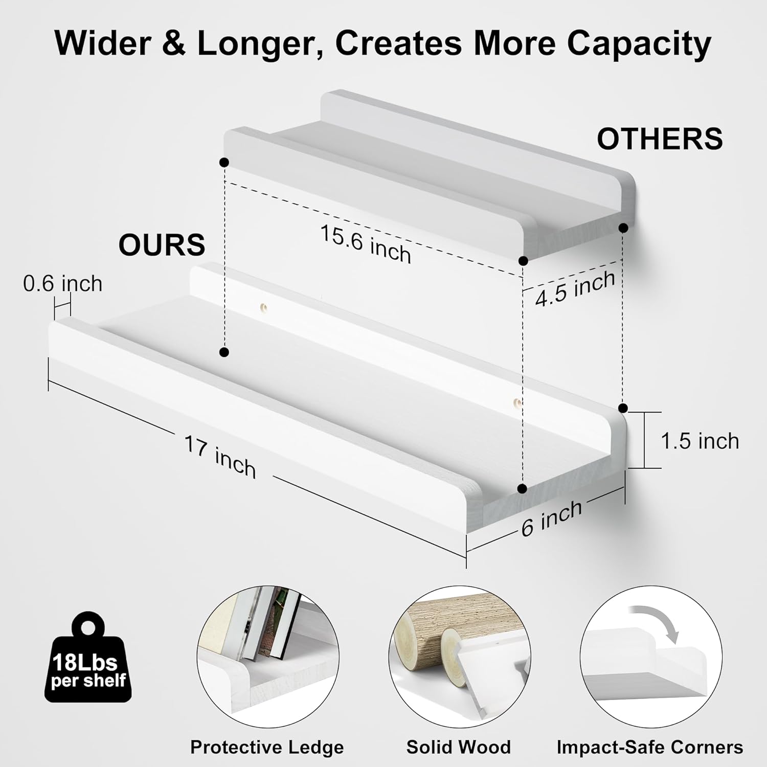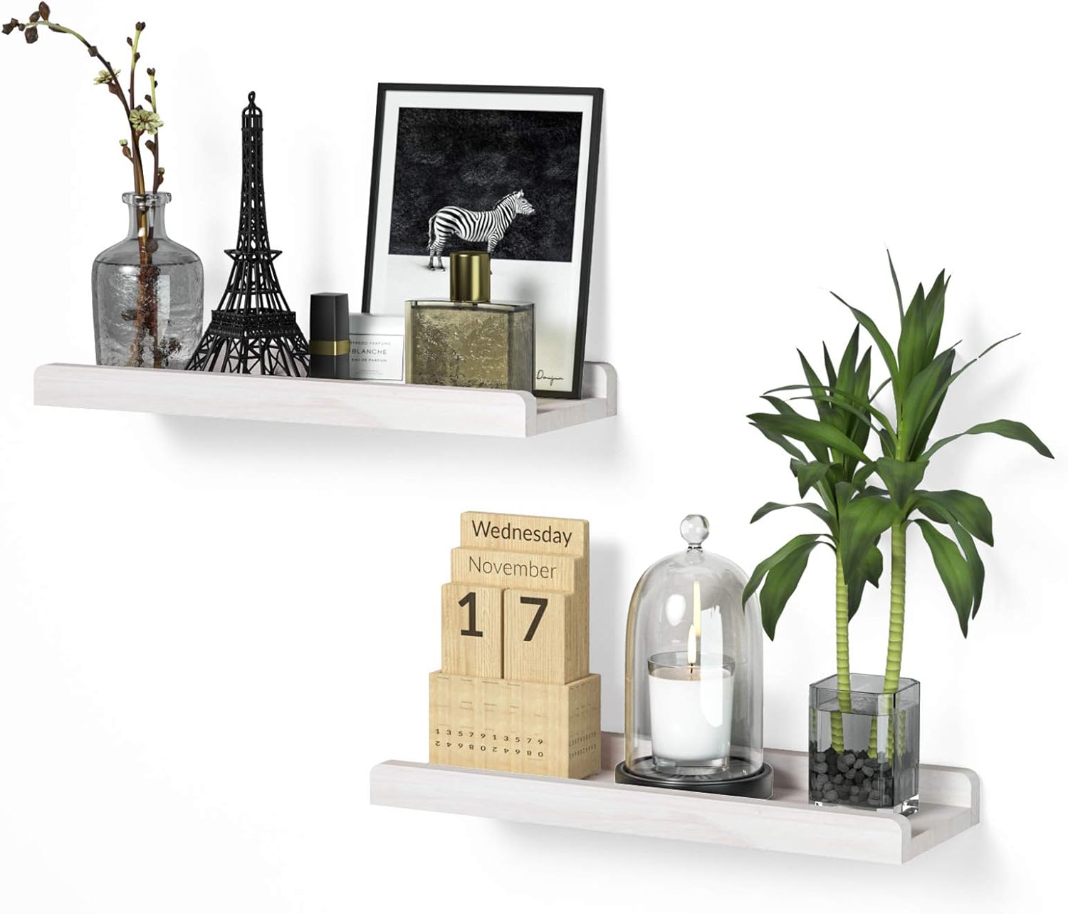 Slide Protective Ledge – Different from other floating shelves, it has professional design with protective ledge in the front, which will allow you to stably display your items, including picture frame, ornamental, and houseplants, protecting them from creeping down.