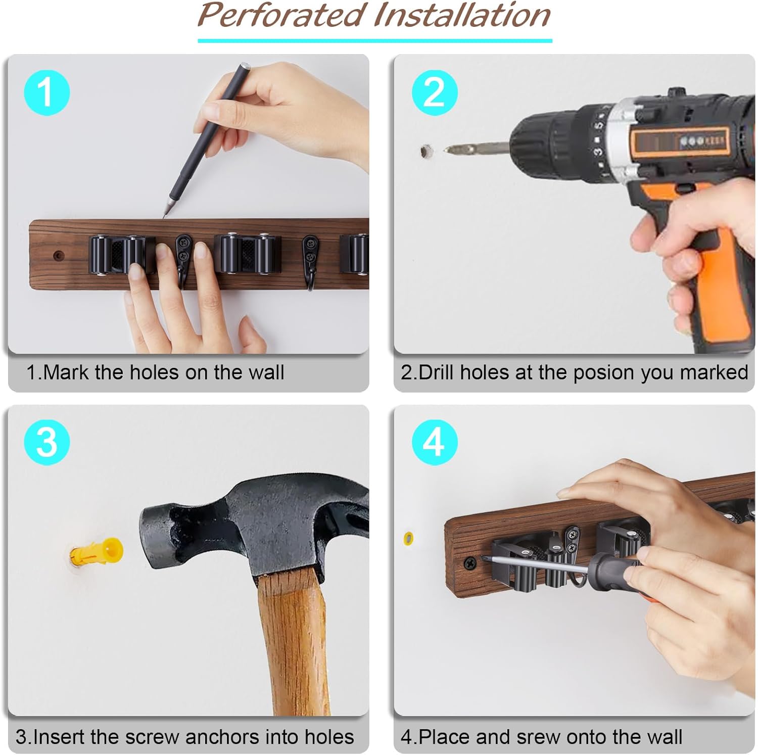 EASY INSTALLATION – You can easily mount this broom holder to most flat wall surfaces using the included mounting hardware (including drywall anchors and standard screws). Note: Please note that the distance between the mounting holes is 35.5cm/14 inch.
