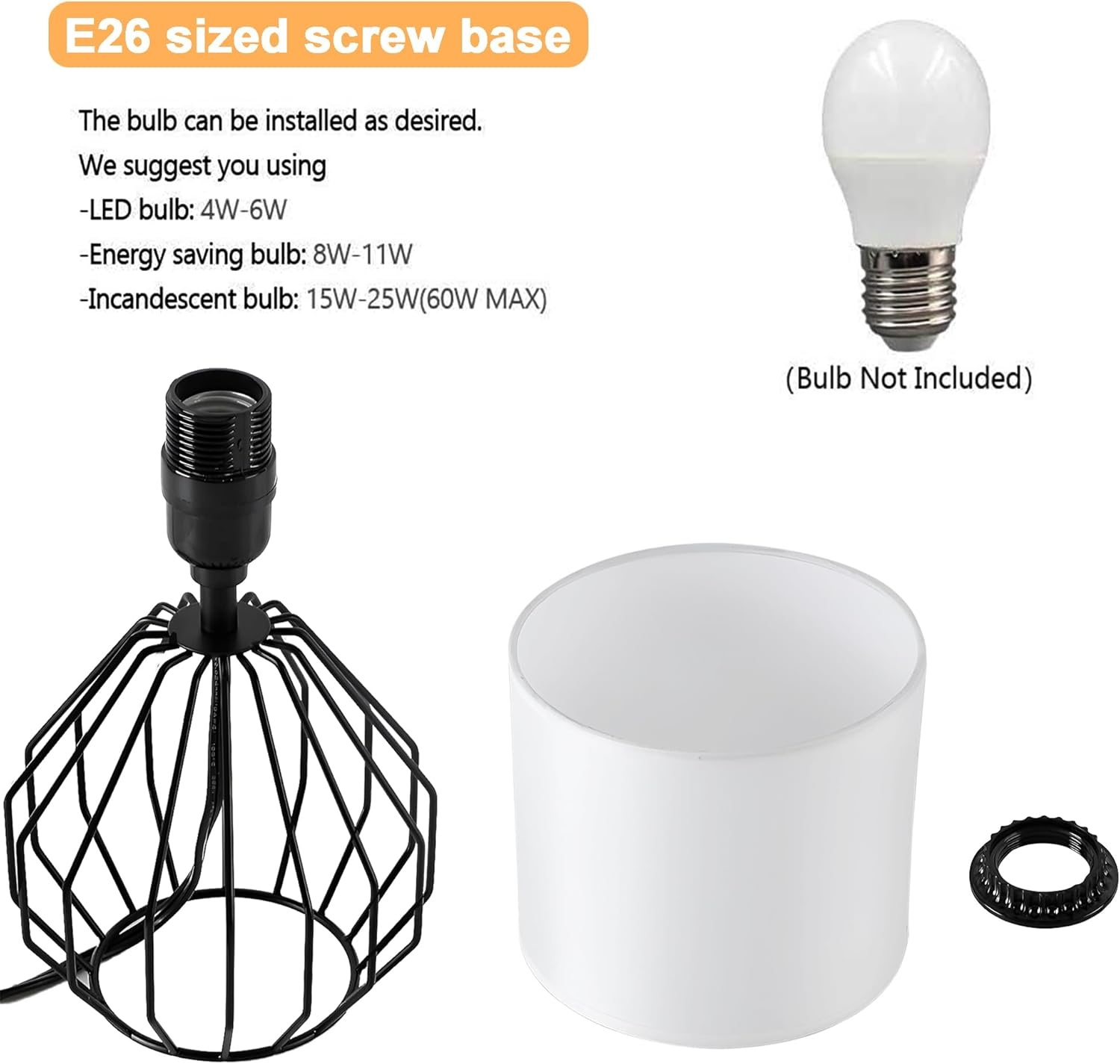 Bulb not Included.The black metal bedside nightstand lamp requires an E26 base bulb,you just need to buy an E26 bulb (A19 or A15 shape bulb is recommended) to go home and enjoy the wonderful light.