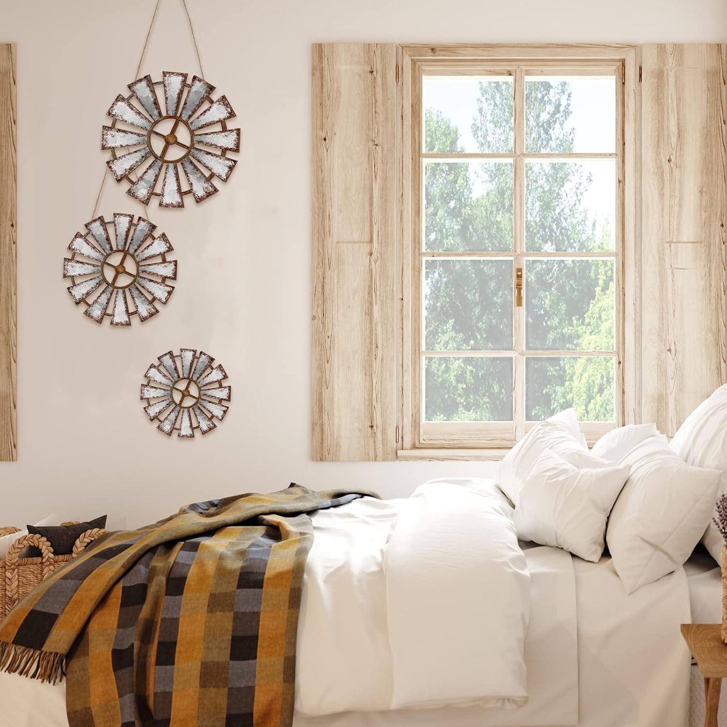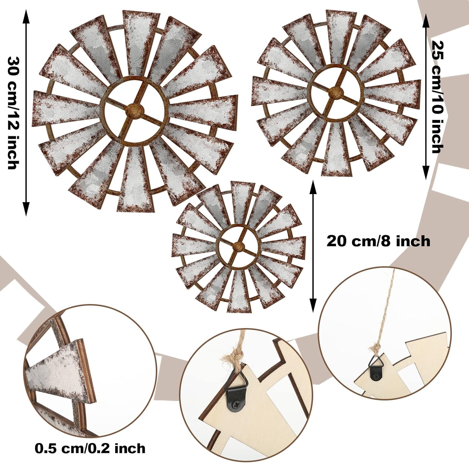 Easy to Operate: rustic farmhouse windmill comes with 2 black triangular hooks on the back, making it easy for you to hang it where you want, such as living room, office, nursery, which will not take much of your time